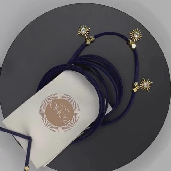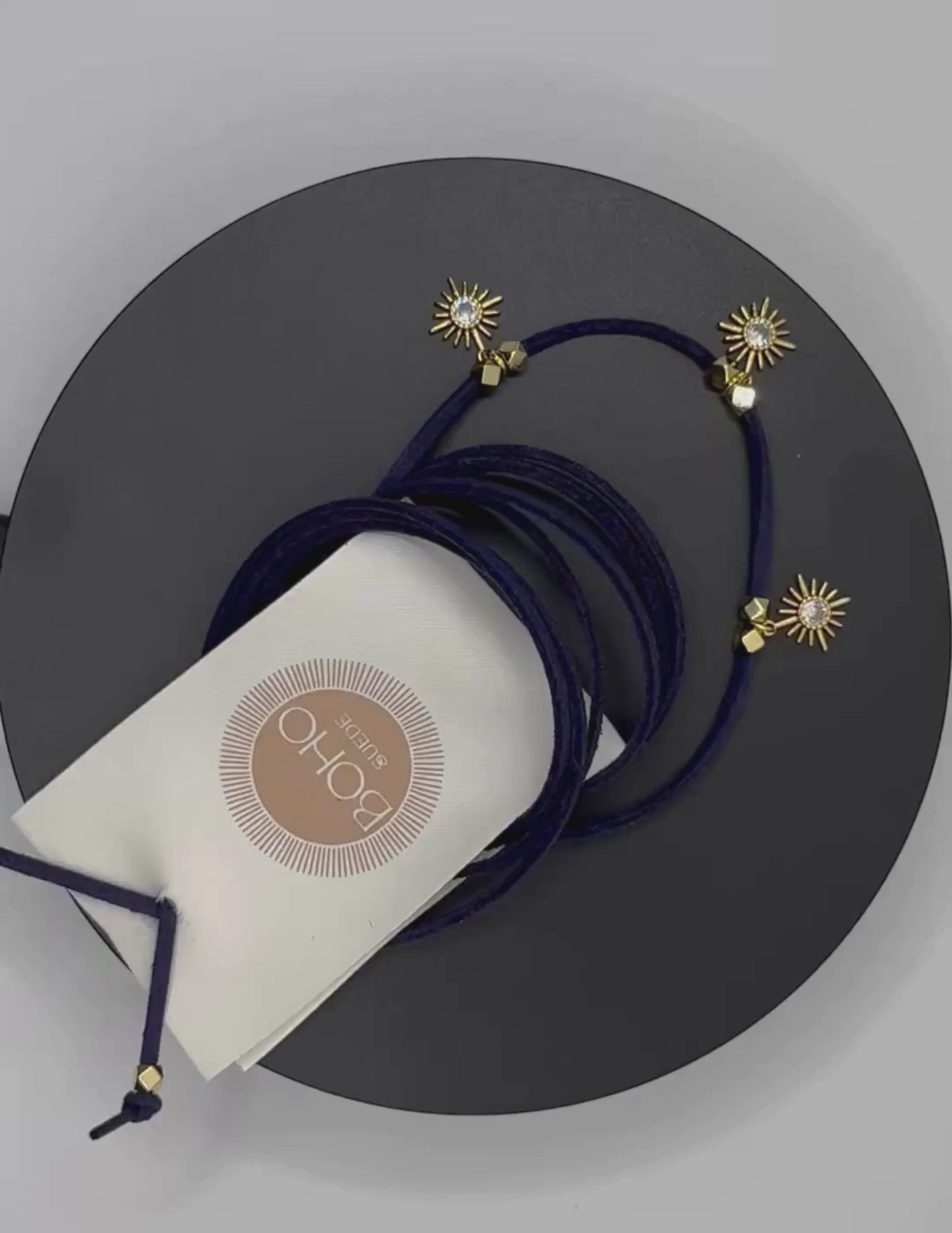 La collana BOHO SUEDE nasce dall’incontro tra pelle scamosciata di alta qualità e ottone placcato oro 18 carati, lavorati con attenzione artigianale per creare un equilibrio perfetto tra morbidezza e luce.